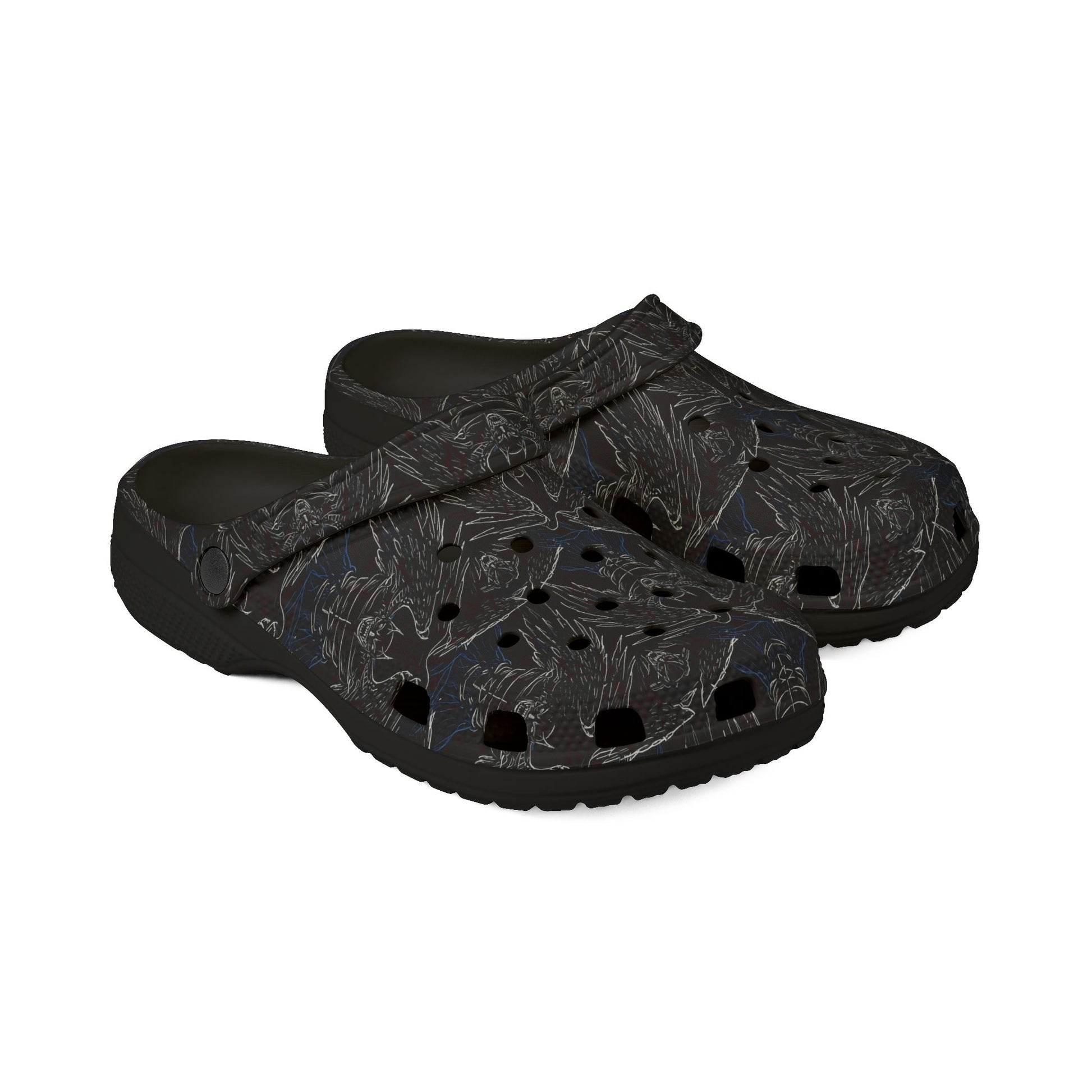 These lightweight EVA clogs blend everyday ease with subtle urban edge. The all-over dark, marbled print reads like worn leather from afar, giving a low-key, textured look that slides on for quick outings or relaxed home days. Soft, flexible EVA molds with each step, while the ventilated upper keeps feet cool. An adjustable strap lets you wear them snug for walking or pushed forward for an easy slip-on. Small charm holes invite personality — add a few fun accessories to make them yours. They’re for people who value practical comfort but still want footwear that speaks to their style without shouting.