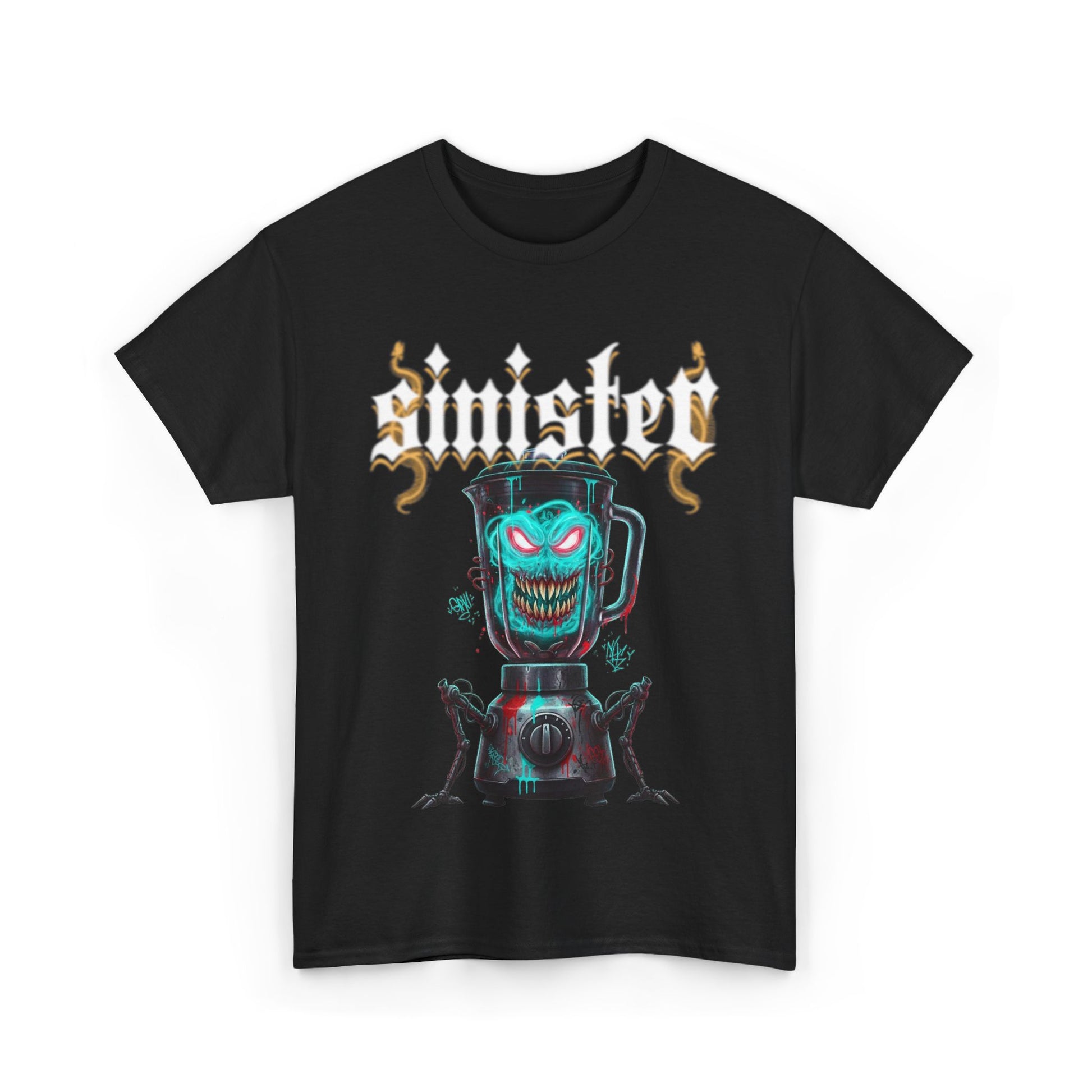 A bold, dark tee that wears like a piece of attitude. The heavy cotton gives this shirt a substantial, lived-in feel while the graphic—an eerie, grinning figure lit in teal and blood-red—pulls eyes and starts conversations. The cut is relaxed with a crew neckline and tear-away label for comfortable, no-fuss wear. Built to last, the fabric holds prints crisply so the sinister artwork keeps its edge wash after wash. Wear it to late-night shows, underground meetups, or when you want a touch of macabre humor in your everyday rotation.