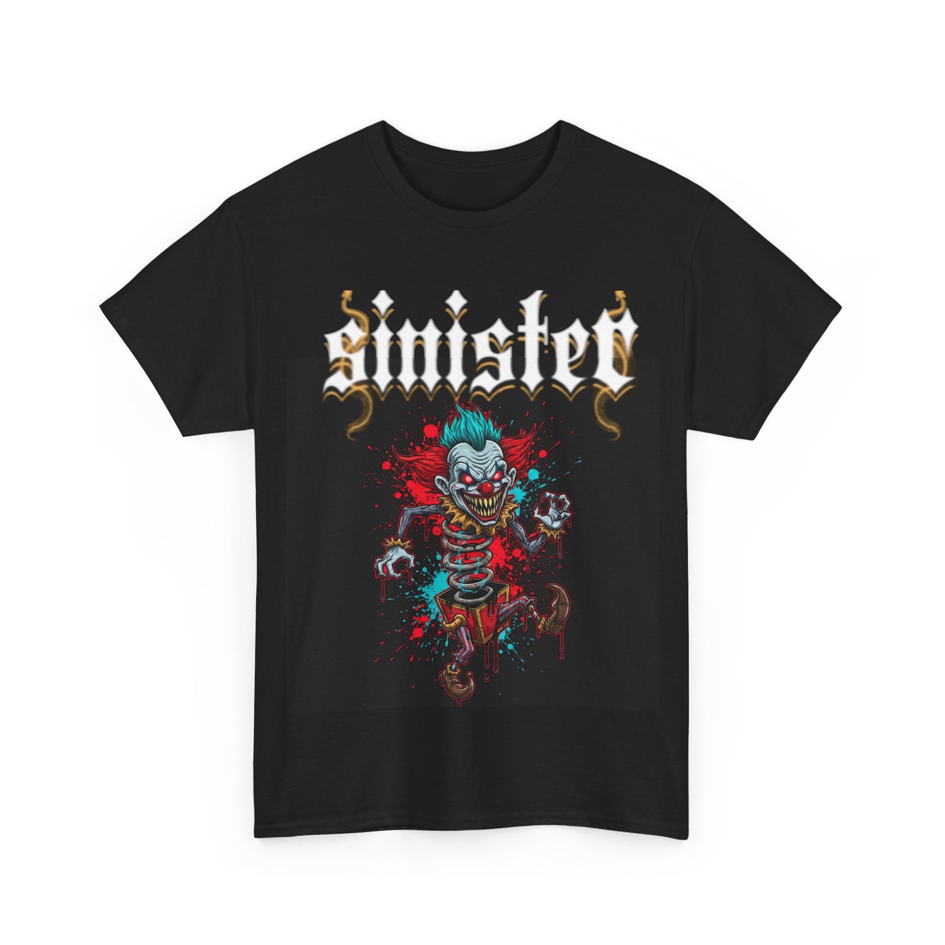 A bold, dark tee made for people who love gritty, cinematic horror and twisted pop-culture art. This classic-fit shirt features a vivid, DTF/DTG-printed graphic of a sinister clown in mid-rampage — saturated reds, teal highlights, and distressed gold lettering give the image depth and a hand-illustrated feel. Wear it to shows, late-night drives, or when you want your outfit to tell a story: moody, mischievous, and unapologetically loud. The medium-weight cotton holds print detail while staying breathable, and the clean crew neck and tubular knit body keep the silhouette neat and wearable every day.