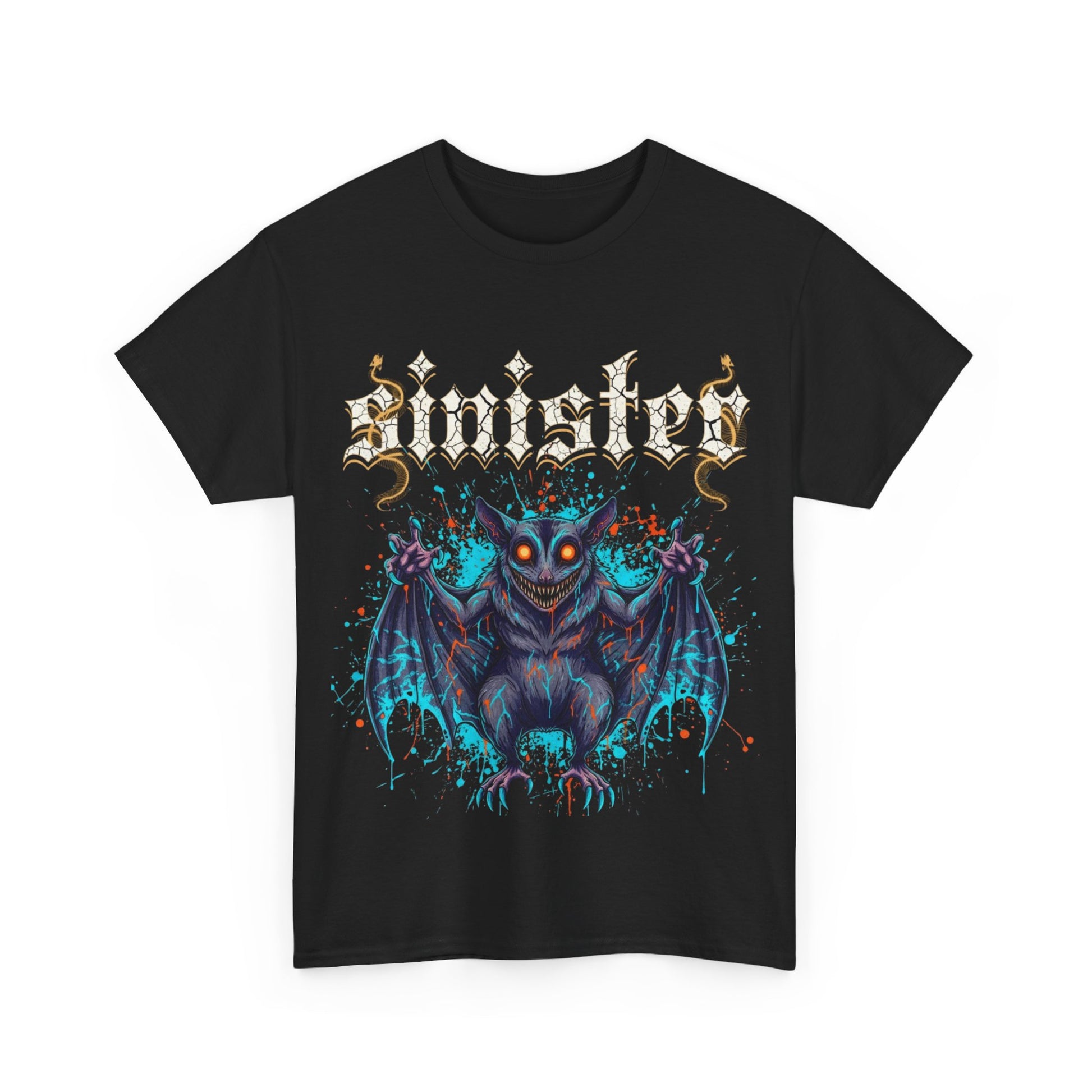 This black cotton tee wears its darkness loud and proud. A vivid, neon-infused gargoyle crouches at center, eyes glowing like embered coals, wings spread as if ready to launch into the night. The ornate gothic wordmark above — distressed and dripping with gold accents — adds a vintage-metal edge that feels both rebellious and ritualistic. The shirt’s medium-weight cotton and classic crew cut make it feel broken-in from the first wear, while the bold artwork keeps every glance charged with attitude. Slip it on for late-night shows, moody city walks, or when you want your outfit to do the talking: it’s a statement piece that matches a love for dark fantasy, heavy riffs, and midnight mischief.