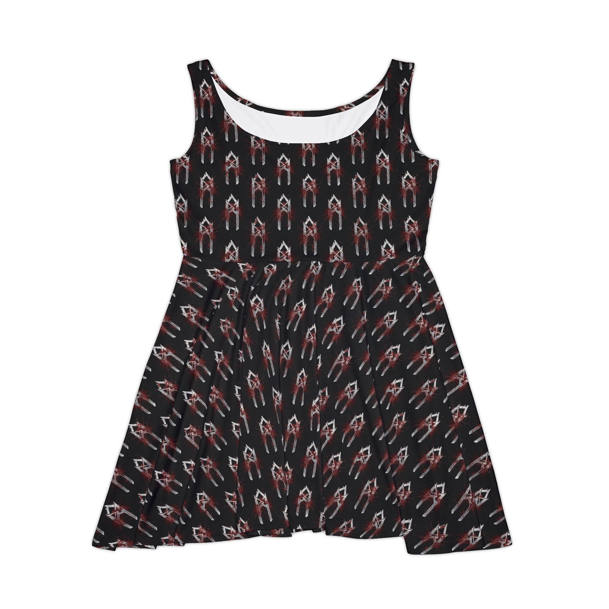 A playful, flared skater dress printed all over with a repeating vintage rocket motif on a deep black ground. The mid-length, asymmetrical skirt swings with movement while the high scoop neckline and sleeveless cut keep the silhouette clean and modern. Built from a soft, stretchy polyester-spandex blend, the dress holds vivid colors and crisp detail so the small rocket pattern reads clearly from every angle. Wear it to indie concerts, night market strolls, or maker fairs — it reads like wearable nostalgia for space-curious wardrobes. The fabric’s medium-heavy weight gives the skirt body without feeling stiff, and reinforced double-needle hems increase longevity through many spins and washes.