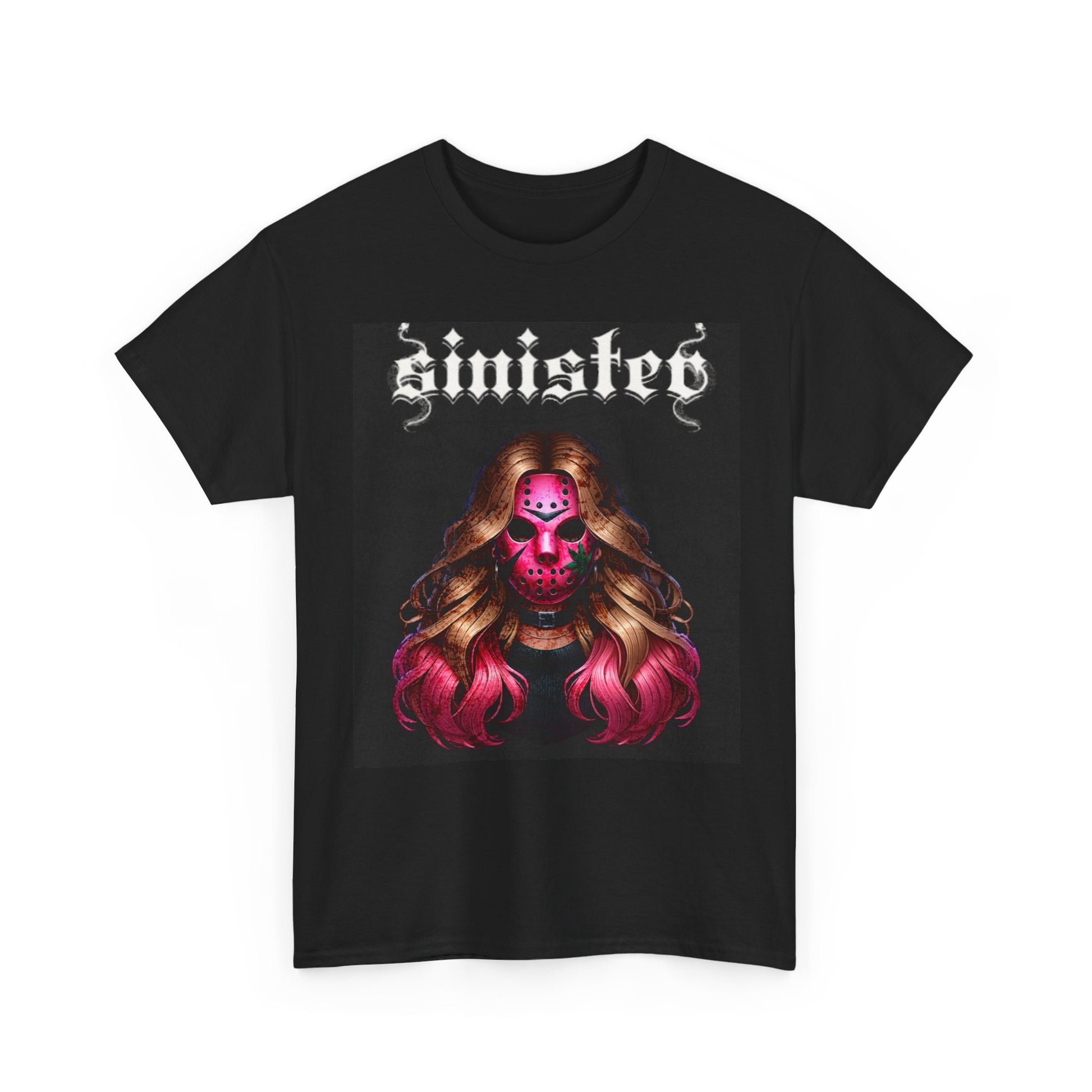 This classic crewneck tee carries a dark, edgy mood — a bold, gothic portrait printed on a sturdy black canvas. The design shows a skull-masked figure with flowing, magenta-tinted hair and distressed lettering above, giving the shirt a heavy-metal, night-street energy. It wears like a lived-in favorite: relaxed through the body, stable at the shoulders, and soft against the skin. Wear it to small venues, late-night hangs, or while sketching new riffs. The shirt holds crisp detail thanks to DTF and DTG printing, so the saturated pinks and subtle texture remain sharp wash after wash. Ethically sourced cotton and a tear-away label keep it comfortable and responsibly made, while the classic fit and medium-weight fabric make it easy to layer under jackets or throw on solo for a statement look.