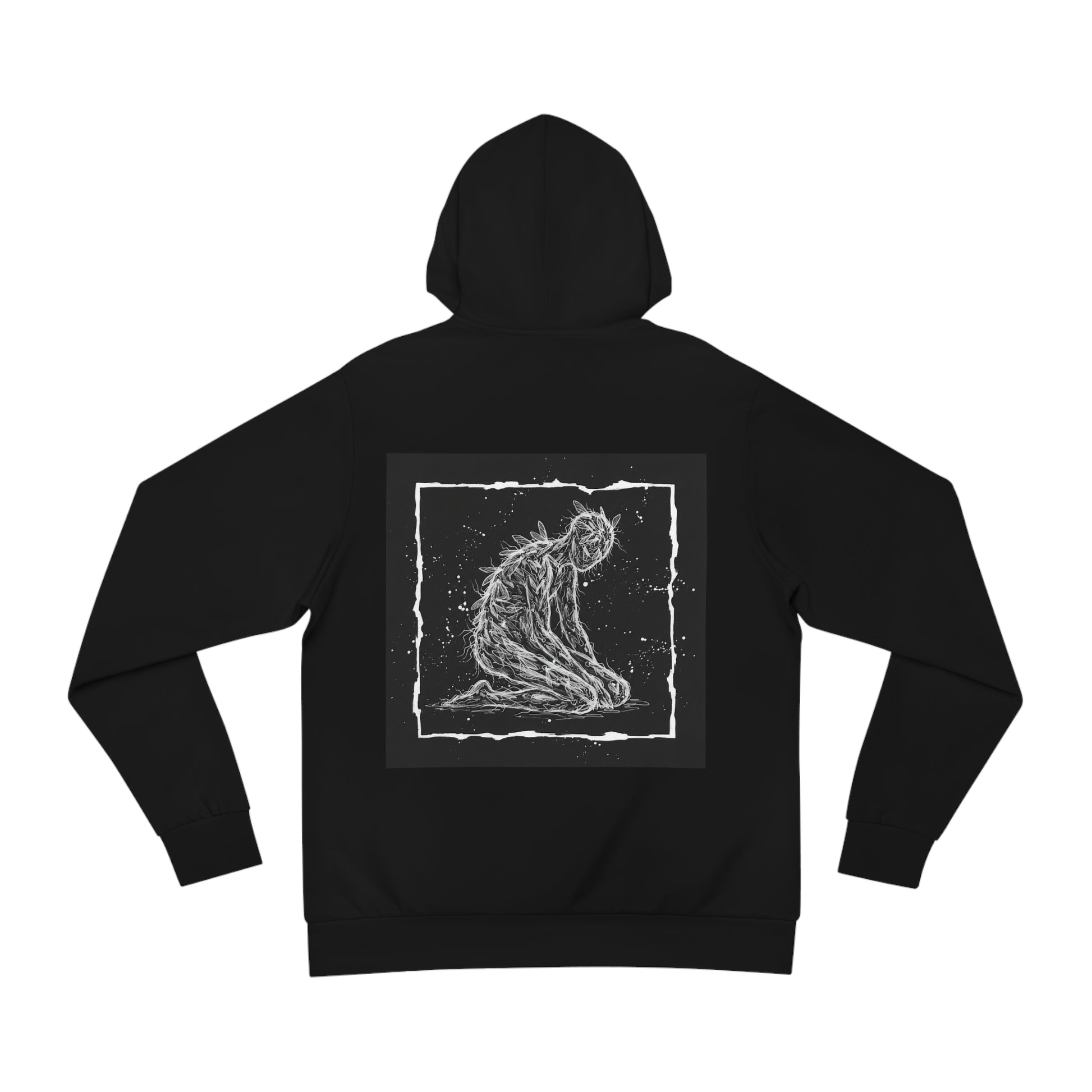 A dark, expressive hoodie that wears its mood on the sleeve — and the back. The front shows a flame-kissed gothic wordmark, while the back features a raw, monochrome illustration of a bent, searching figure. It feels like late-night streets and underground shows: heavy with atmosphere, textured in print, and built to last. Wear it when you want your outerwear to speak in whispers and growls. The roomy kangaroo pocket and adjustable hood make it easy to layer over band tees or a long-sleeve as you slip into cool venues, rainy walks, or quiet nights in. This is clothing for people who collect mood, music, and midnight streets in equal measure.