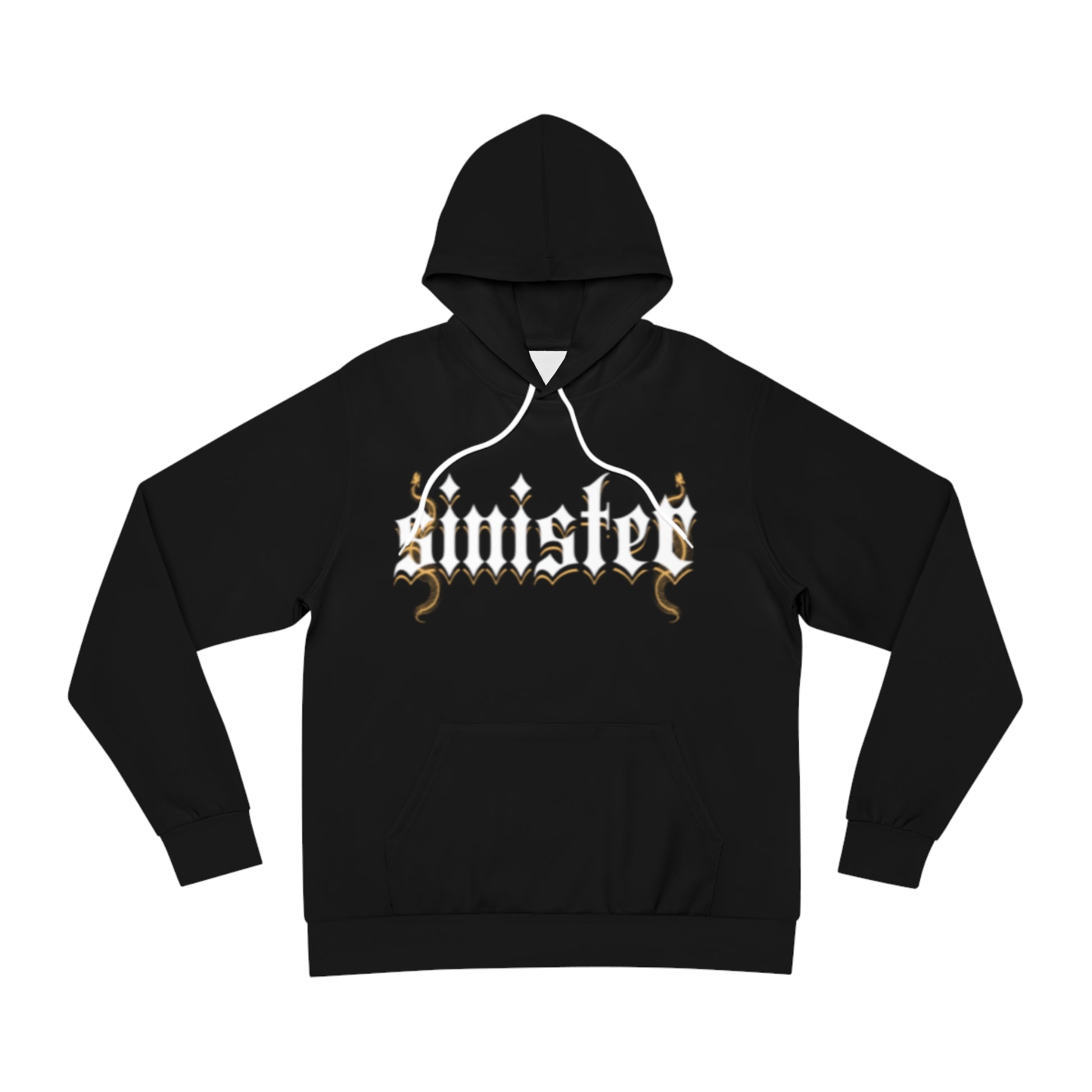 A black hoodie with bold gothic lettering across the chest and a distressed, mysterious emblem on the back. The front’s ornate script carries a metallic-gold flourish that catches the eye, while the back shows a framed question-mark motif with a textured, worn look. The medium-heavy fabric drapes comfortably and holds print detail well. This hoodie is for people who favor moody, alternative streetwear — it layers easily over band tees, under coats, or alone as a statement piece that hints at curiosity and edge. Wear it to late-night shows, meet-ups with friends, or when you want an outfit that feels personal and a little enigmatic.