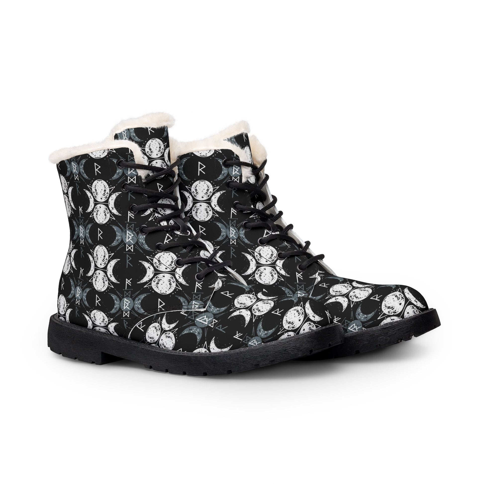 These lined ankle boots bring together rugged utility and soft warmth. The durable microfiber exterior holds a high-contrast printed pattern while a plush fleece lining cradles your feet for chilly days. A water-resistant PVC outsole grips sidewalks and trails, so you can move from city streets to frosted paths without swapping shoes. Subtle lace-up styling and a mid-height shaft give them a confident, wearable silhouette that complements layered winter outfits and evening walks by the river. Veg-friendly materials mean you get leather-like look and rich print clarity without animal products.