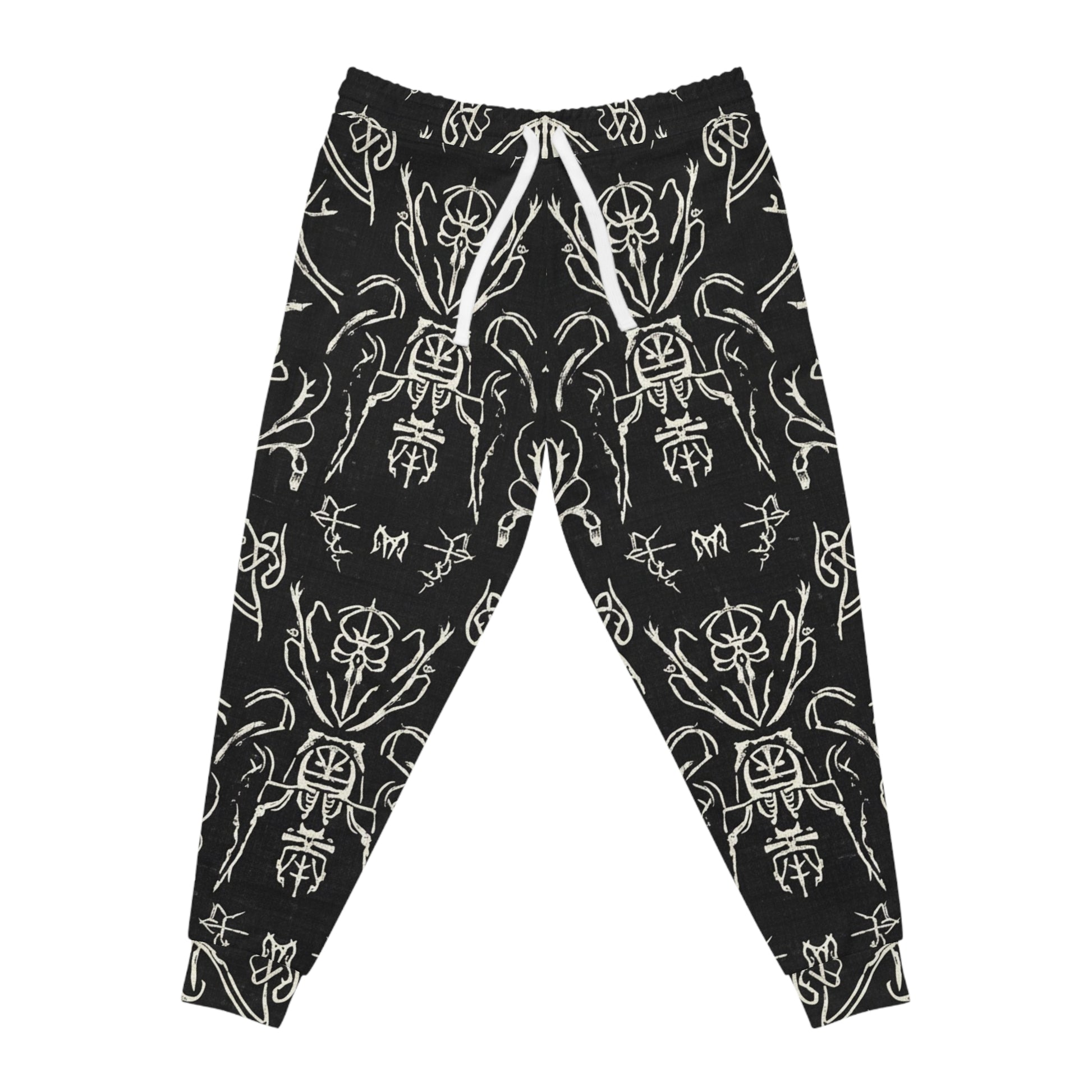 These athletic joggers are a wearable pattern study — soft, slightly structured, and covered edge-to-edge in a hand-drawn, monochrome motif that reads like modern folklore. The fabric has a gentle stretch that moves with you whether you’re stretching at dawn or settling into an evening of creative work. Deep, double-layer side pockets hold your phone and keys without pulling at the seams. The drawstring waist lets you dial in comfort, while the all-over print keeps the look bold and artful. They feel quiet and intentional: for people who choose clothes that reflect a thoughtful, slightly mysterious aesthetic and that wear well from studio to street.