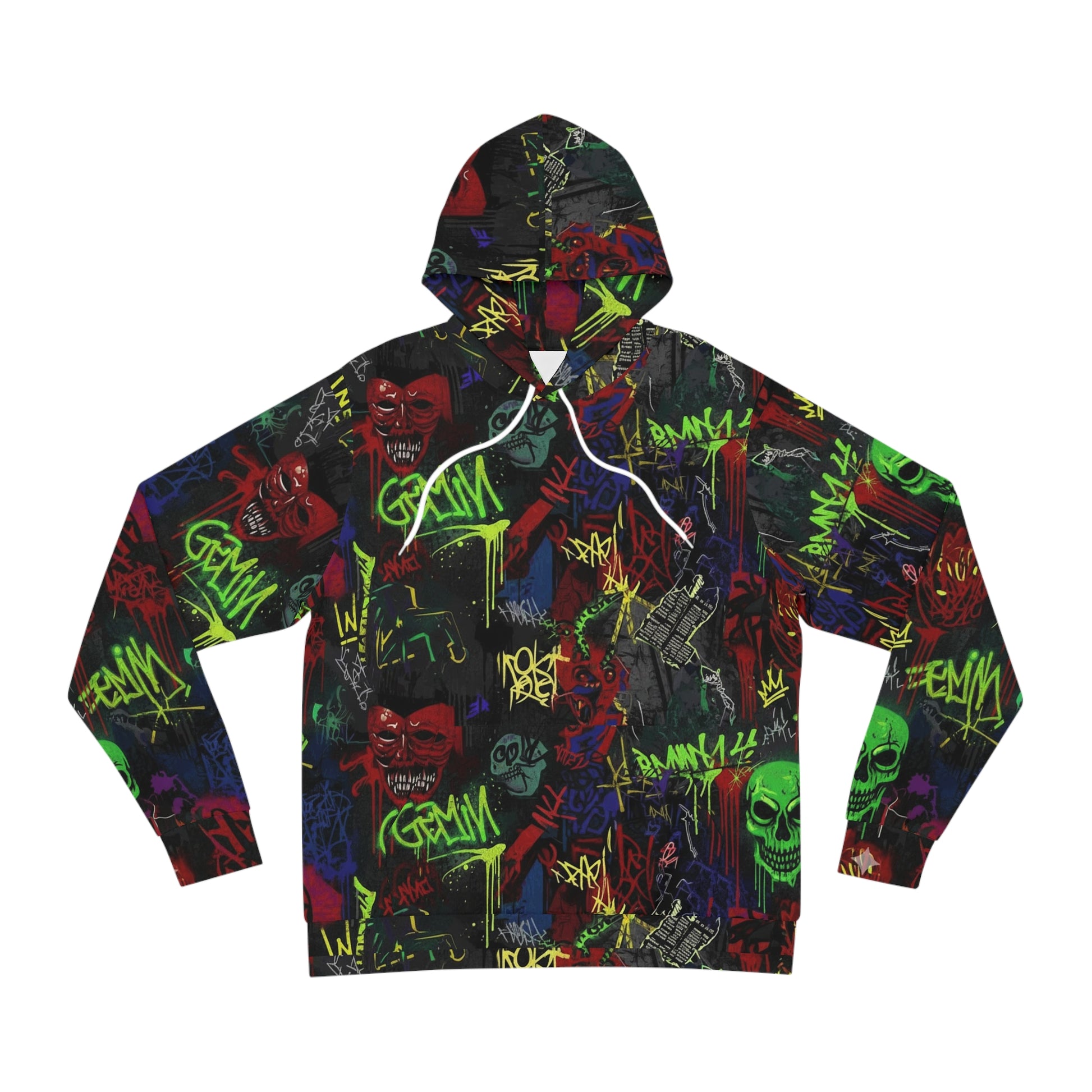 This bold, all-over print hoodie brings late-night street energy to your wardrobe. Neon skulls, graffiti tags and dripping paint collide across a deep black background, creating a chaotic, expressive look that works layered under a leather jacket or solo with jeans. The medium-heavy fabric feels substantial without being stifling, and the roomy kangaroo pocket and adjustable hood make it an easy go-to when you want to stand out while staying comfortable. Colors read electric on most areas and the printed care label keeps the interior clean and tag-free.