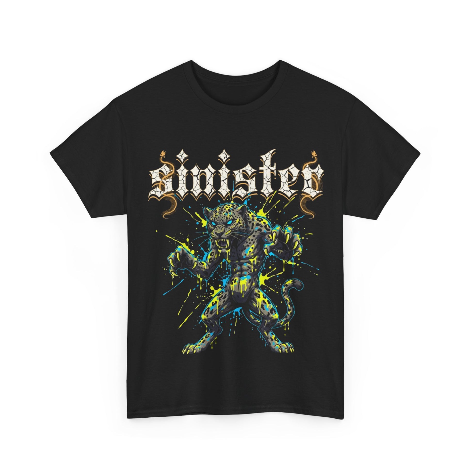 This heavy cotton tee carries a raw, underground energy — a dark, chaotic creature rendered in electric greens and bruised yellows beneath a jagged, old-English wordmark. It sits on a roomy classic cut that hangs relaxed from the shoulders, so the artwork reads bold and uninterrupted across the chest. Wear it to shows, late-night hangs, or when you want to channel something aggressive and untamed into an otherwise ordinary day. The crewneck stays comfortable thanks to the ribbed, seamless collar and shoulder tape that keeps its shape. The print uses high-detail techniques for crisp colors that really pop against the black ground. Ethically sourced cotton and durable stitching mean this shirt will keep that lived-in look without losing its edge.